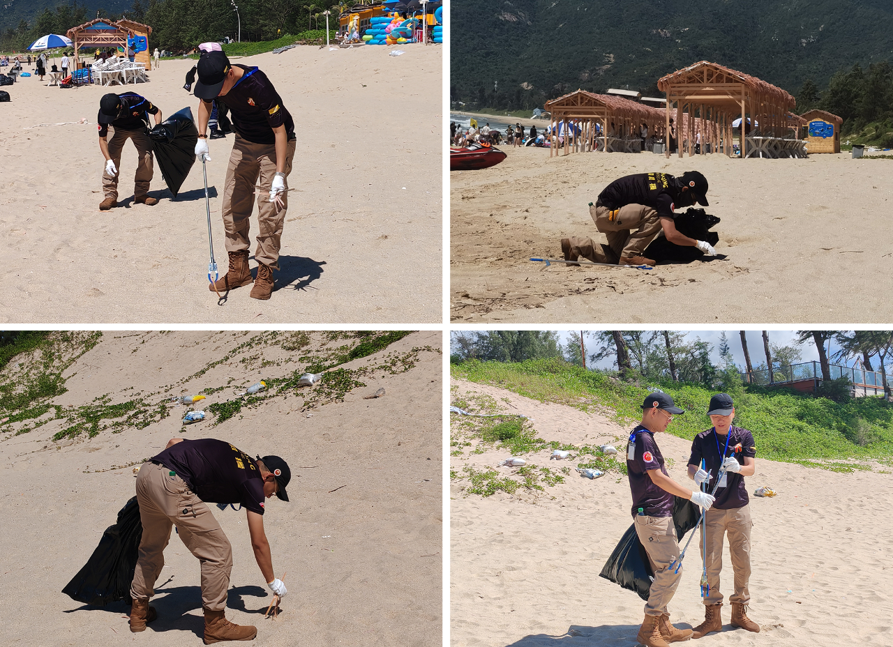 为积极践行生态文明理念,以实际行动守护海洋生态,8月16日,由西涌社区、西涌股份合作公司、保利城市建设服务有限公司主办,公羊救援队和深圳亿程文旅发展有限公司协办的“蔚蓝西涌·净滩送凉”公益行动在大鹏新区南澳街道西涌社区三号黄金海岸沙滩开展。深圳市潮青商会公益基金会执行秘书长兼志愿救援队队长杨祥奎,救援队总教官方平,顾问张祥翊,水域安全官景峰,教官苏晨,队员林煜鑫、郑瑞庆及队员家属参加活动。