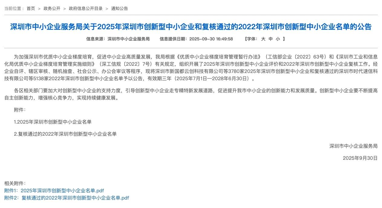 为加强深圳市优质中小企业梯度培育,促进中小企业高质量发展,深圳市中小企业服务局根据《优质中小企业梯度培育管理暂行办法》(工信部企业〔2022〕63号)和《深圳市工业和信息化局优质中小企业梯度培育管理实施细则》(深工信规〔2022〕7号)有关规定,组织开展了2025年深圳市创新型中小企业评价和2022年深圳市创新型中小企业复核工作。