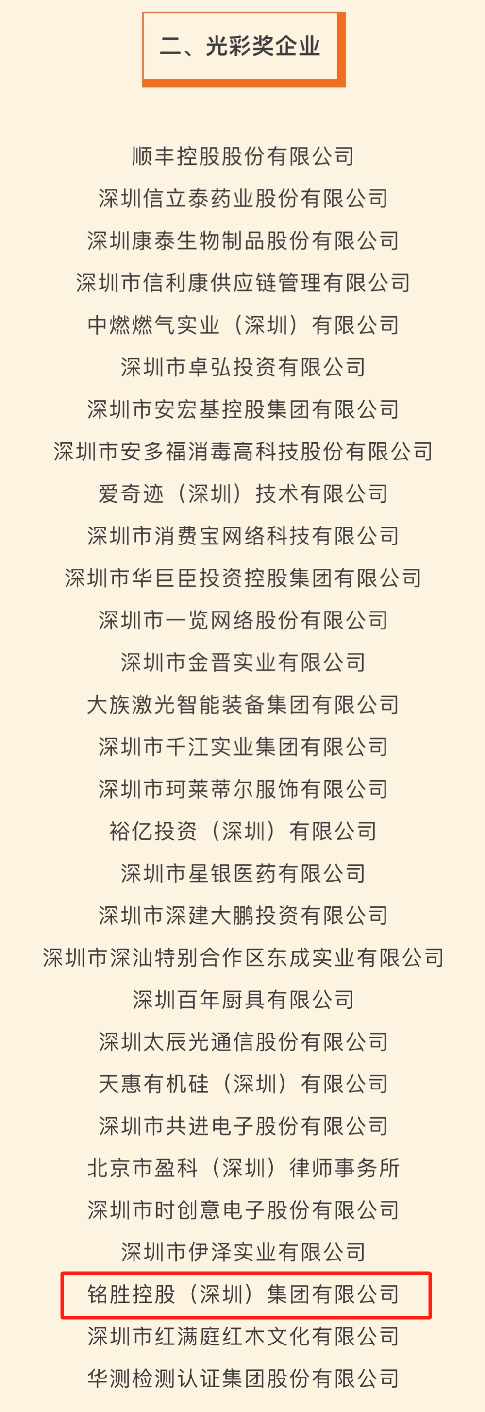 全国工商联并购公会副会长、广东省民营企业投资商会执行会长、深圳市工商联(总商会)副会长、深圳市潮汕青年商会常务副会长郭铭远企业铭胜控股(深圳)集团有限公司荣获“光彩事业贡献奖”。