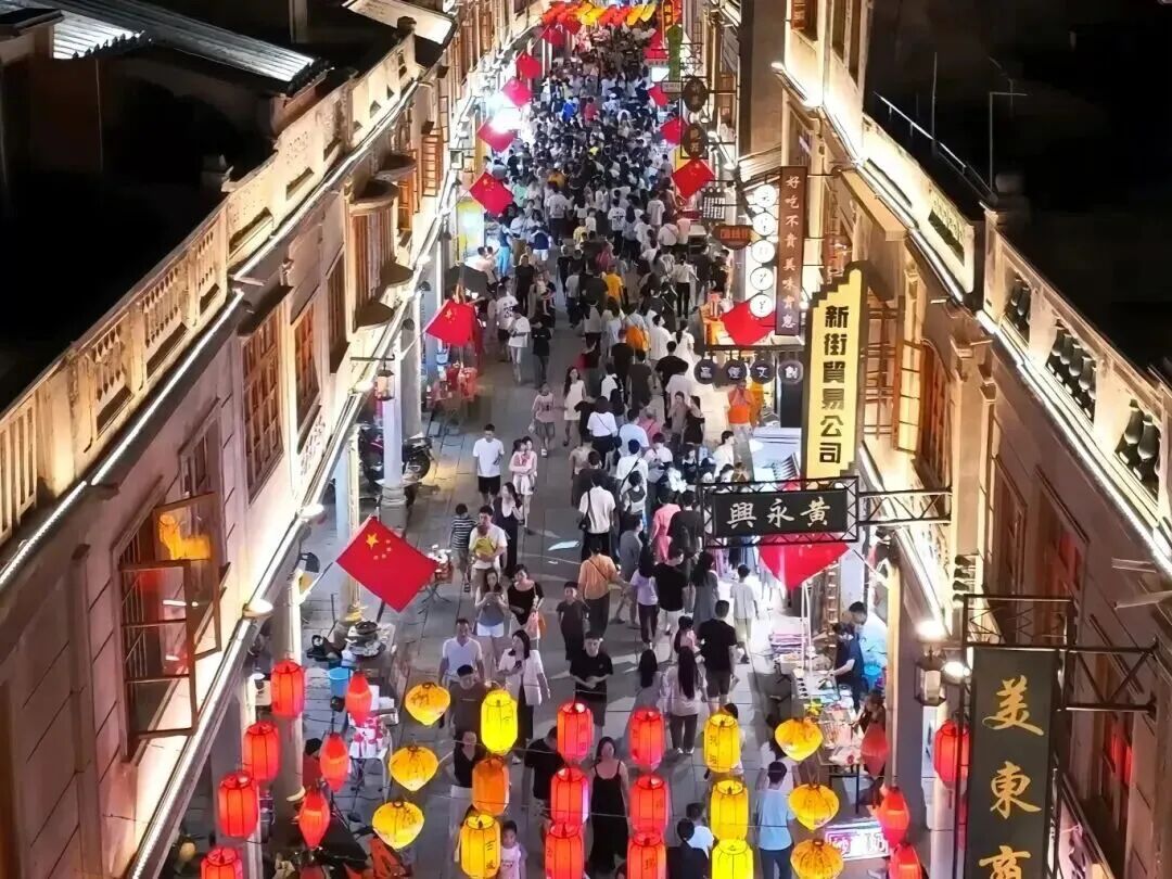 修复后的揭阳古城实现了传统与现代交融共生。老字号商铺与特产文创店相映成趣;中山路南洋风情拱廊连片重现,“协昌号”等老字号重迎宾客,成为游客打卡的文化地标;环古城风貌提升工程南环段与滨江栈道先行段完工,沿溪步道上,老人散步、孩童嬉戏,一派生机。