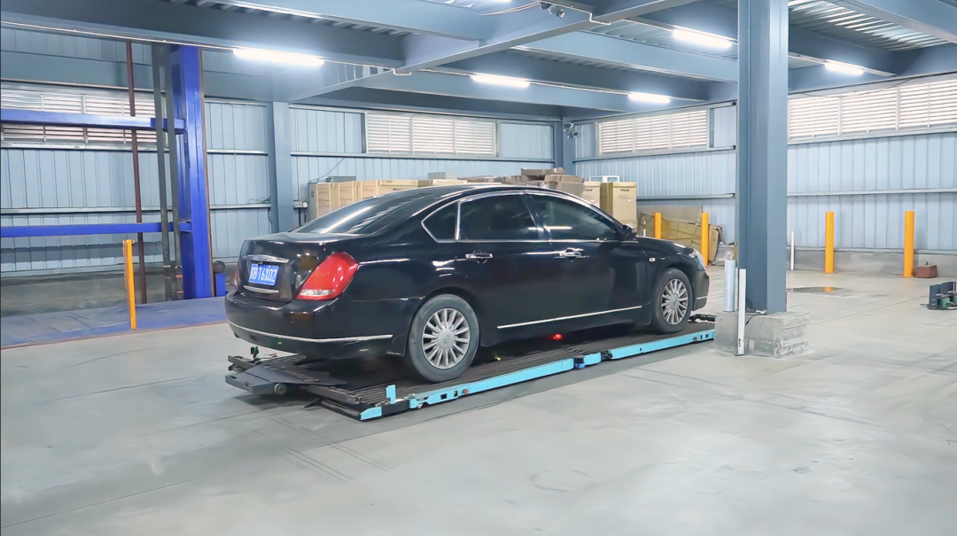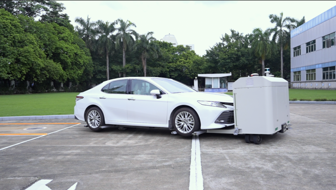 在怡丰公司宽敞明亮的生产车间内,一台停车机器人正在施展着它那“乾坤大挪移”般的神奇“功法”:只见工作人员将一辆黑色小轿车停稳后,停车机器人滑动着纤薄的“身躯”来到车底,将车辆稳稳地托举起来;随后,它竟像长了“眼睛”一样,载着小轿车径直向车库滑去,将车子方方正正地停在了车位里。整个过程一气呵成、严丝合缝,如同喝水一样“丝滑”。
