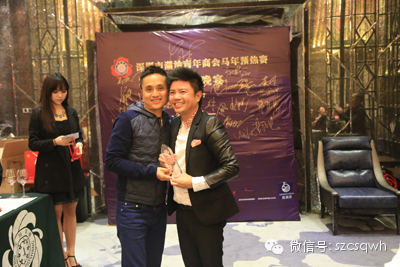比赛结束后,全体成员移步到“预园上海饭庄”参加“2014年深圳市潮汕青年商会马年预热赛荣誉颁奖晚宴”,经过最终的角逐,获奖的名单已出炉,最终副会长许松青以总杆90杆获得冠军,常务理事马腾龙以95杆获得亚军,名誉会长张晓镔以98杆获得季军,冠亚季军的奖品由观澜湖集团副主席朱鼎耀先生倾力赞助。郑小龙获得BB奖,吴波斯以一杆340码获得“飞跃奖”,期间增加的一个“最佳参与奖family”由卓睿、卓亚著、卓亚著三兄弟获得,以奖励他们对活动的积极参与。此次比赛遗憾的是无人获得终极大奖一杆进洞,5万元奖金由副会长方洪杰赞助,不过方洪杰副会长在晚宴上表示在下次比赛中一杆进洞大奖再赞助更大的奖品。