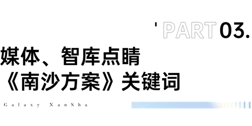 于有银:《南沙方案》选取南沙湾、庆盛枢纽、南沙枢纽3个区块作为先行启动区,总面积约23平方公里。充分发挥上述区域依托交通枢纽快捷通达香港的优势,加快形成连片开发态势和集聚发展效应,有力带动南沙全域发展,逐步构建“枢纽带动、多点支撑、整体协同”的发展态势。先行启动区的选择主要基于几个方面的考量:一是具有国际化的元素,二是智能化的交通网络,三是现代化的产业体系。