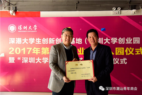 深圳大学校长李清泉为李奕标会长颁赠“大学生创业导师”聘书。