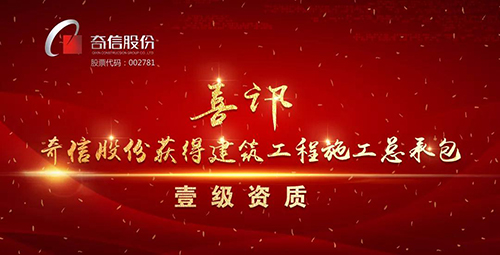 奇信股份获得建筑工程施工总承包壹级资质