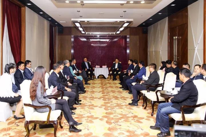 商会拜访团一行与李闻海副总裁(左三)座谈 2017年10月14日上午,深圳市潮汕商会会长吴木棠、荣誉会长王再兴、驻会会长黄育宏、常委、副会长何奕鹏、财…