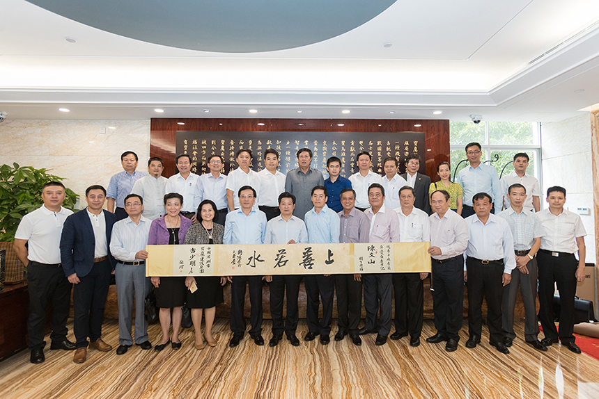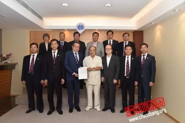 吴开松创会会长(前排中)将申办报告递交给陈幼南主席,并合影留念 2017年9月7日下午,深圳市潮汕商会创会会长、永远荣誉会长吴开松,会长吴木棠率团赴香港拜访国际潮团…
