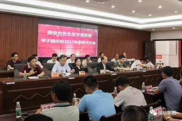 助学成长,筑梦飞翔 9月9日下午,由甲子镇党委、政府主办的“龚俊龙先生奖学颁奖暨甲子镇庆祝2017年教师节大会”在甲子中学行政办公大楼隆重举行。 恒裕集团董…