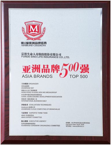 富德生命人寿七度入选“亚洲品牌500强”