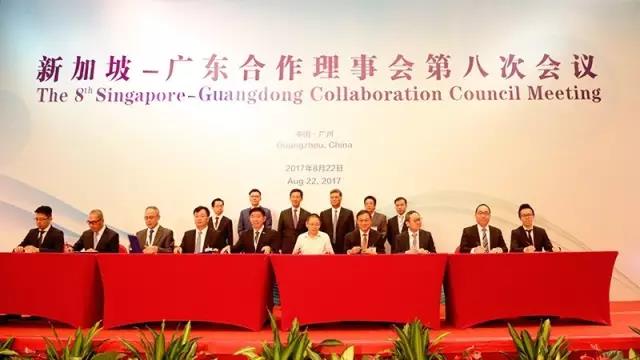 △新加坡教育部部长兼国防部第二部长、新加坡-广东合作理事会新方联合主席王乙康先生与广东省省长马兴瑞先生共同见证双方相关单位和企业签署合作协议 …