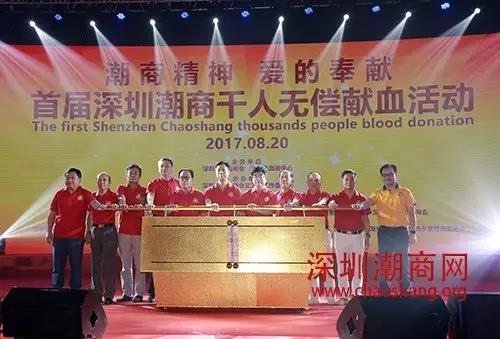 首届深圳潮商千人无偿献血活动启动仪式 2017年8月20日,由深圳市潮汕商会、深圳市血液中心联合主办,深圳17家潮属社团协办的“潮商精神 爱的奉献——首届深圳潮商千…