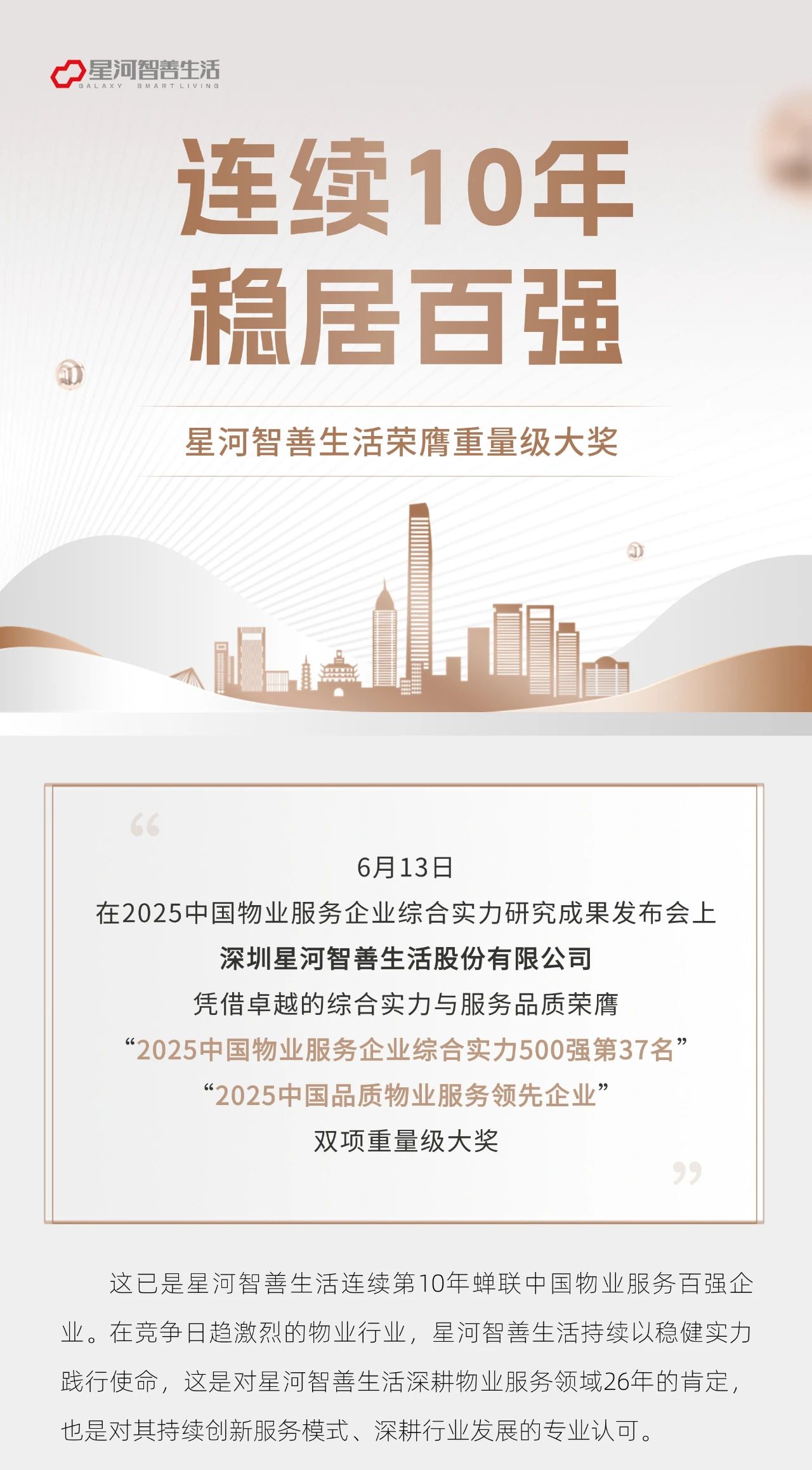 热烈祝贺星河智善生活连续十年蝉联中国物业服务百强企业