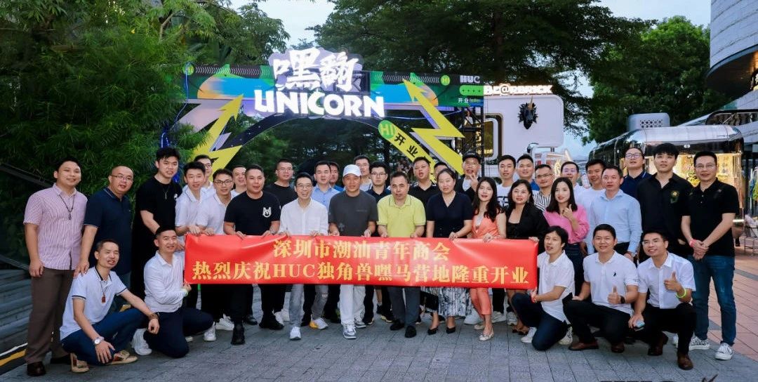 深圳潮青商会60多人组团赴欢乐海岸参加HUC独角兽嘿马营地开业派对活动