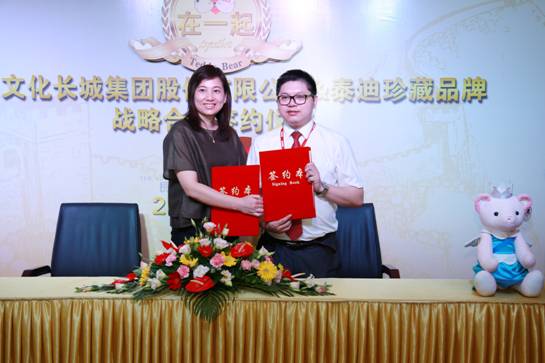 2015年7月27日,广东文化长城集团股份有限公司与天络行(上海)品牌管理有限公司在长城集团艺术馆隆重举行“泰迪珍藏”品牌合作签约仪式,成为“泰迪珍藏”中国区特约生产、销售授权商。长城集团副董事…