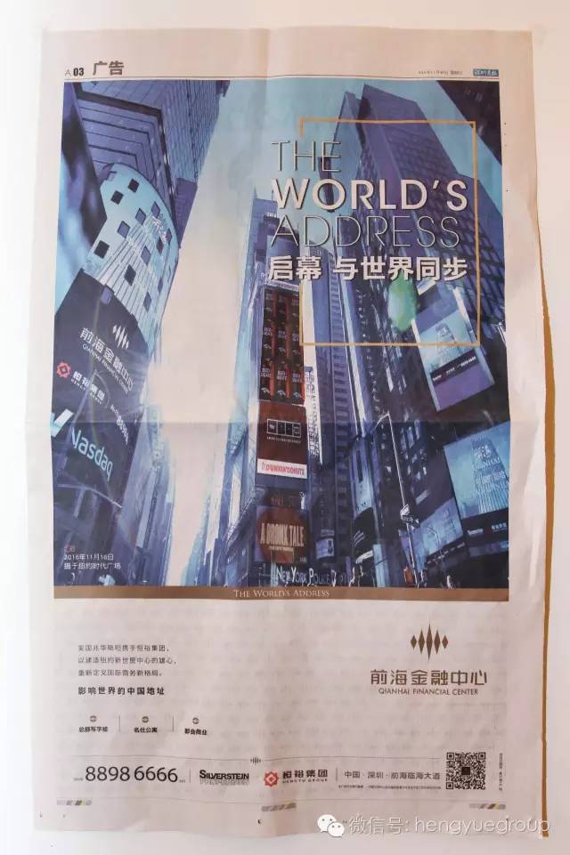 12月2日, 深圳地区各大报纸头条都被一张图片占领! 前海金融中心亮相美国纽约时代广场, 这是深圳商务标杆项目首次在全球金融中心亮相! 启…