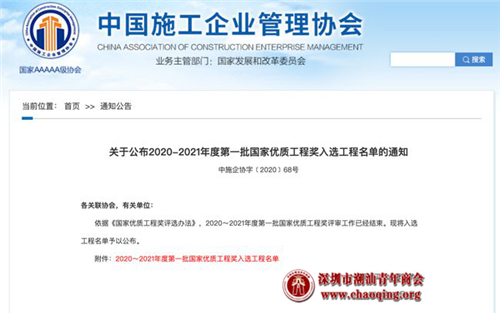 喜讯 12月1日,中国施工企业管理协会官网公布了2020-2021年度第一批国家优质工程奖入选工程名单。其中,本会副会长单位深勘…