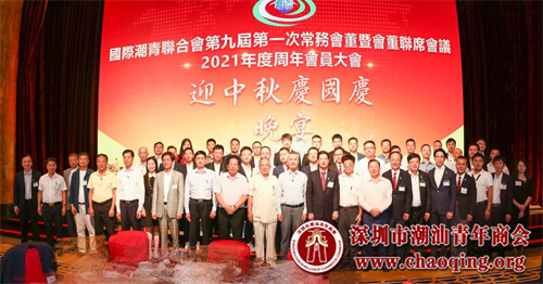 黄兰发主任、庄礼祥书记、李奕标会长等与深圳潮青商会庆贺团合影 2021年9月19日晚,国际潮青联合会第九届第一次常务会董暨会董联席会议、2021年度周年会员大会暨…