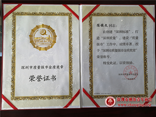 银广厦集团陈镇文董事长荣获第六届“深圳市质量强市金质奖章”