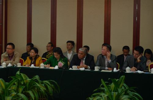 2014年2月2日,来自国内外潮人社团务实交流活动在揭东县东海酒店举行。来自国内外40多家潮团及有关机构会长、秘书长共80多人欢聚一堂。与会代表围绕新形势下潮团会务运作新模式展开热烈讨论,积极踊跃发言,气氛活跃。