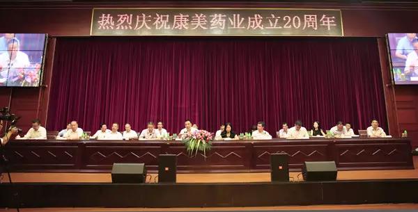 马总、许总等出席庆典大会的领导、嘉宾及员工一同观看康美药业20周年宣传片