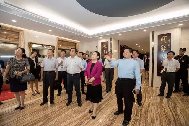 ▲全国政协科教文卫体委员会副主任、中国经济社会理事会副主席张秋俭一行参观宝鹰集团办公环境及宝鹰美术馆