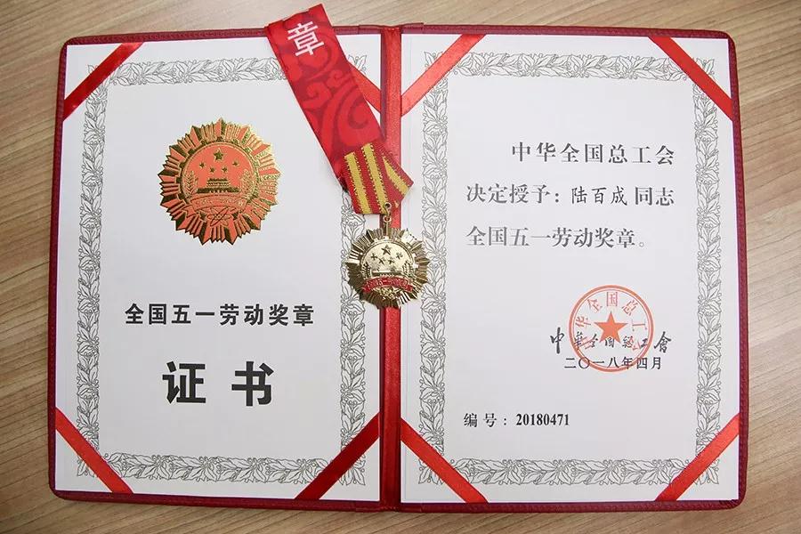 ▲百泰陆百成荣获全国五一劳动奖章