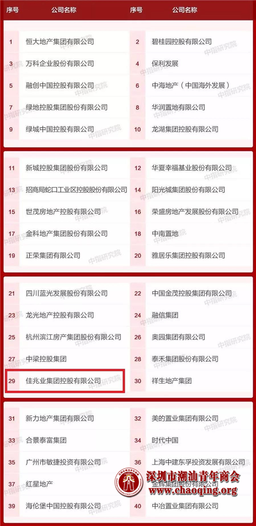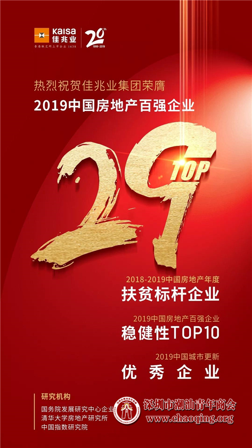 2019中国房地产百强企业榜出炉 湾区龙头佳兆业荣列第29名
