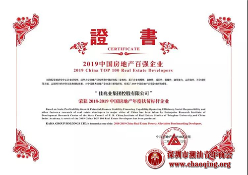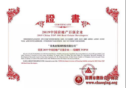 3月19日,“2019中国房地产百强企业研究成果发布会暨第十六届中国房地产百强企业家论坛”在北京举行。凭借良好的经营业绩和强劲的综合实力,佳兆业集团获评“2019中国房地产百强企业29强”、“2019中国房地产百强企业——稳健性TOP10”、“2018-2019中国房地产年度扶贫标杆企业”。此外,由于在城市更新方面的领先优势及突出表现,佳兆业集团还被评为“2019中国城市更新优秀企业”。