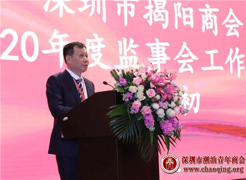 深圳市揭阳商会第三届监事长黄旭初受监事会的委托,作第三届监事会的工作报告。他说,监事会根据商会的章程,以相关法律法规为依据,本着对全体会员高度负责的精神,认真履行监督职责。感谢商会全体同仁对第三届监事会的支持和信任,同时也向各位领导、各兄弟商会及社会各界表示衷心的感谢!2021年将要到来,商会也开启了新的征程,他相信,在以黄时余会长为核心的常务班子的带领下,继续努力,再接再厉,把各项工作做得更好。