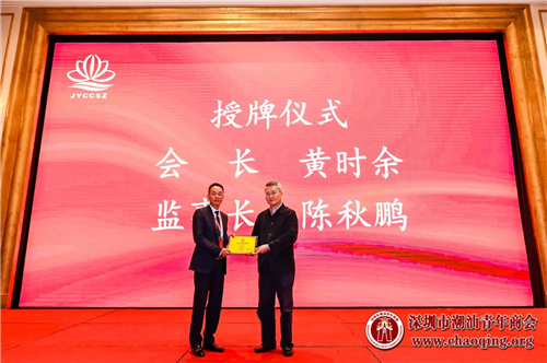 全国政协港澳侨委会副主任黄兰发为陈秋鹏颁牌