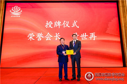 揭阳市人民政府副市长刘鹏为黄世再颁牌