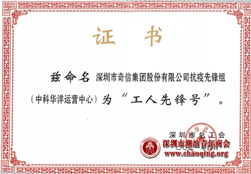 热烈祝贺奇信股份抗疫先锋组荣获“深圳市工人先锋号”