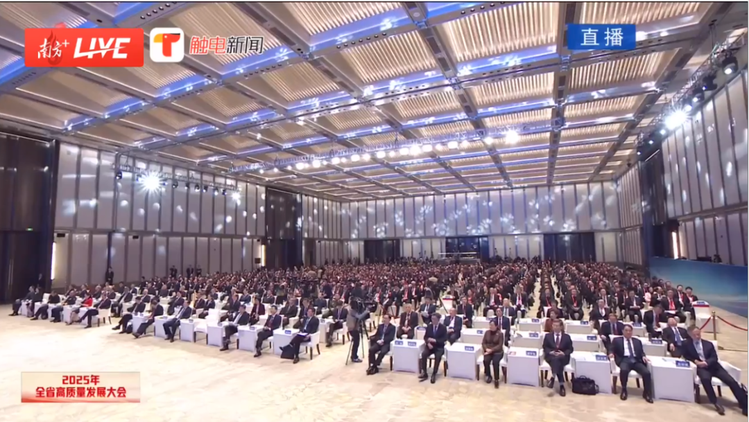 2025年全省高质量发展大会现场,此为直播截图。来源:南方+客户端