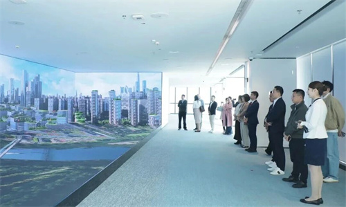 考察团一行走进河套展厅,瞭望整个河套合作区。放眼望去,深港两地隔河相望、科创地标鳞次栉比,展厅内LED屏生动呈现“一区两园”格局。人工智能、生物医药等前沿领域项目“基础研究+成果转化”的创新生态链清晰可见,一幅深港协同、面向全球的科创高地画卷正徐徐展开。